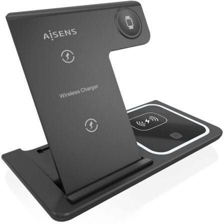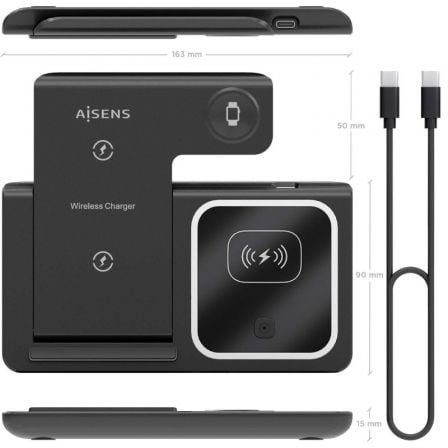 AISENS – CARGADOR INALAMBRICO USB-C 3 EN 1 DE 15W PARA MOVIL, APPLE WATCH, ARICULARES CON ESTUCHE DE CARGA, NEGRO