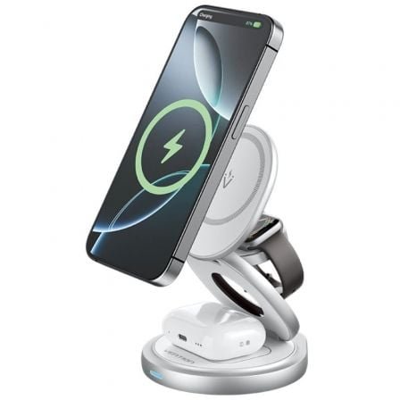- Diseño 3 en 1: carga iPhone, Apple Watch y AirPods simultáneamente.