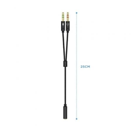 - Cable adaptador audio Jack 3.5mm hembra de 4 pines en un extremo y 2 jack de 3.5mm macho de 3 pines en el otro