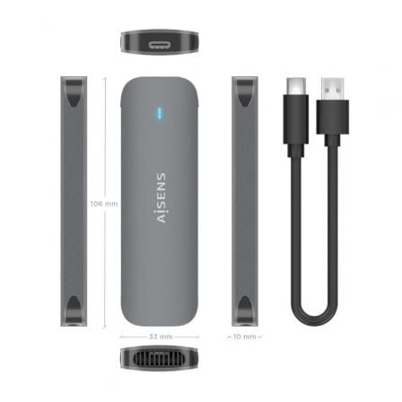 Caja externa para disco ssd m.2 sata aisens asm2-006gry/ usb 3.1/ sin tornillos