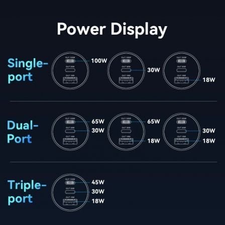 - Salida USB-C1 + USB-C2 + USB-A1: 45W + 30W + 18W