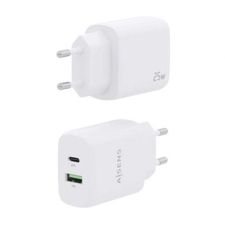Cargador de pared aisens a110-0758/ 1xusb tipo-c/ 1xusb/ 25w