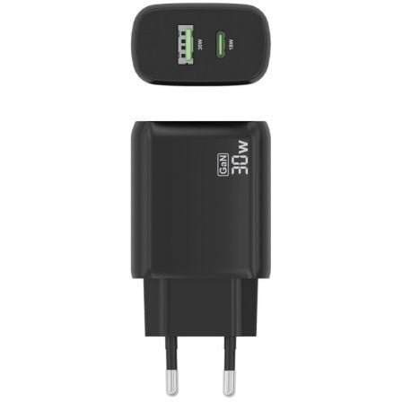 AISENS – CARGADOR GaN 30W, 1xUSB-C PD3.0 QC4.0, 1xUSB-A QC3.0, NEGRO