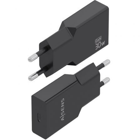 Cargador de Pared GaN Aisens A110-1004/ 1xUSB Tipo-C/ 30W/ Negro