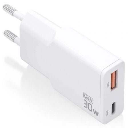 Cargador de Pared GaN Aisens ASCH-30W2P046-W/ 1xUSB Tipo-C/ 1xUSB/ 30W/ Blanco