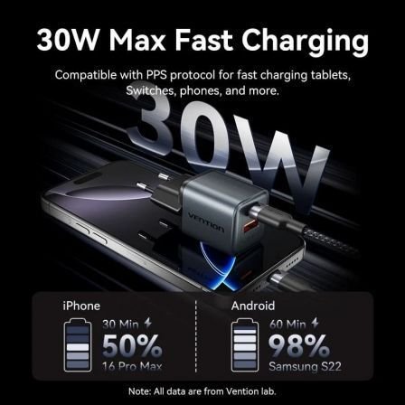 - Carga rápida PD y PPS de 30 W