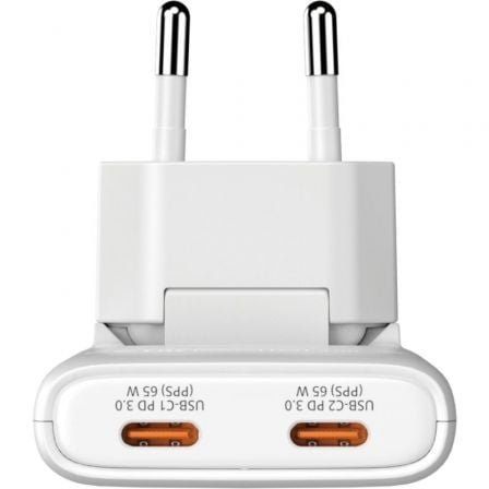 Cargador GaN Fold ‘n’ Go Enchufe UE de 65W y 2 puertos – Blanco