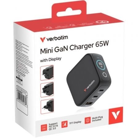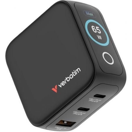 Mini cargador GaN Verbatim de 65 W con pantalla