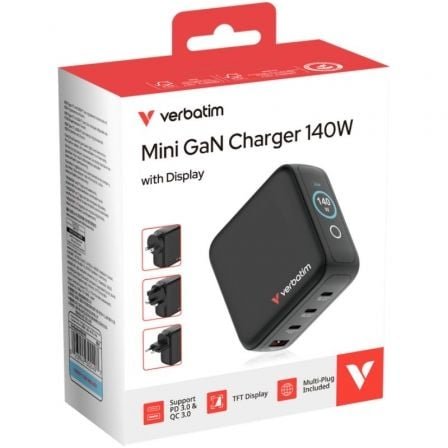 Mini cargador GaN Verbatim de 140 W con pantalla