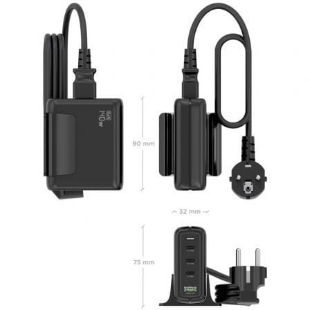 • Cargador de sobremesa GaN USB-C PD3.1 de 140W. Carga rápidamente portátiles, móviles, tablets, cámaras u otros dispositivos. Su diseño de sobremesa ofrece un acceso cómodo y rápido a los puertos USB.