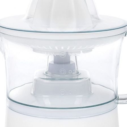 ‘Práctico exprimidor con un volumen de 0,5 litros y jarra extraíble.