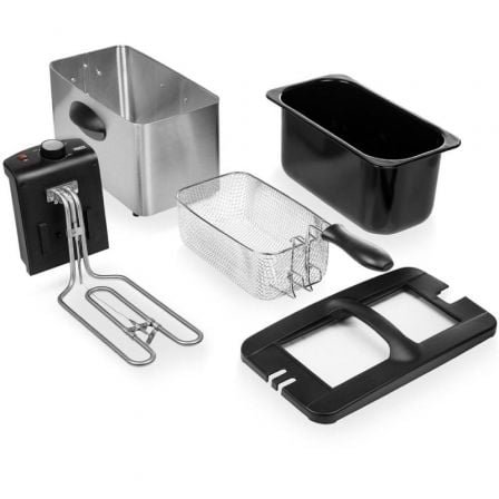 Gran freidora con capacidad de 3 L. Calienta rápidamente gracias a su potencia de 2000 V. Ahora siempre podrá comprobar sus patatas a través del cristal de la tapa.