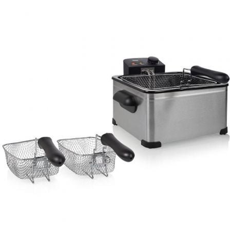 Freidora Tristar, recipiente interior extraíble, 1 cesta de freír grande y 2 pequeñas con asa extraíble, manual de instrucciones