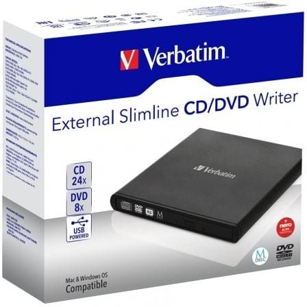 - Grabadora externa de CD / DVD USB 2.0 slimline compacta y ligera.
