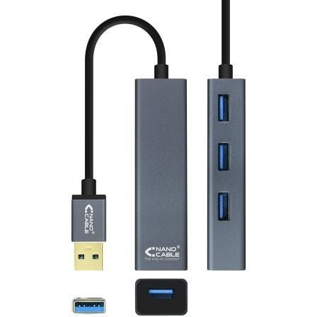Hub usb 3.0 nanocable 10.16.4402/ 4xusb/ gris
