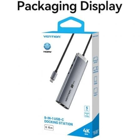 Hub usb tipo-c 3.2 vention tgvhb/ 2xusb/ 1xusb tipo-c pd/ 1xusb tipo-c/ 1xrj45/ 1xlector de tarjetas/ 1xjack 3.5mm/ 1xhdmi/ 15cm