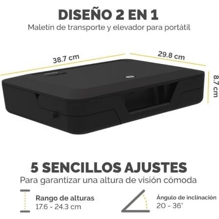 - Diseño 2 en 1: permite transportar y elevar el portátil.