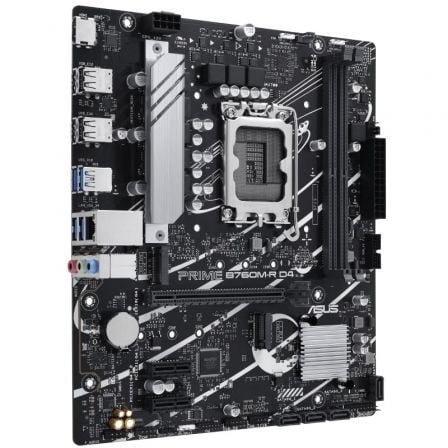ASUS PRIME B760M-R D4 una placa base Intel® B760 LGA 1700 micro-ATX con PCIe 4.0, dos ranuras PCIe 4.0 M.2, DDR4, Realtek 2.5Gb Ethernet, HDMI™, SATA 6 Gbps, puertos USB frontales 5Gbps, Aura Sync
