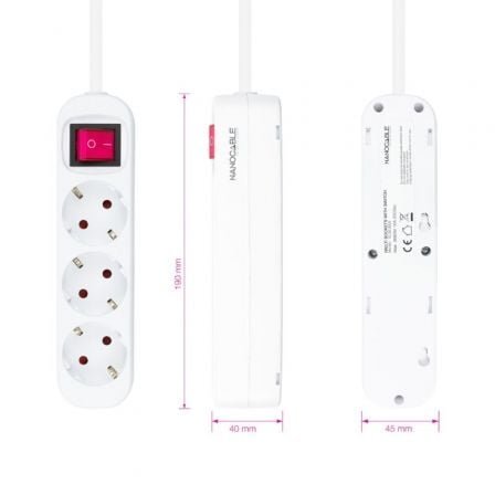Regleta con interruptor nanocable 10.38.0003/ 3 tomas de corriente/ cable 1.4m/ blanca