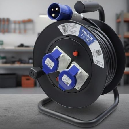 PHASAK BN 3475 es una regleta enrollable con 25 m de cable y 2 tomas industriales 2P+TT. Incorpora protección contra sobretensiones y sistema de enrollado integrado para una recogida rápida y segura.