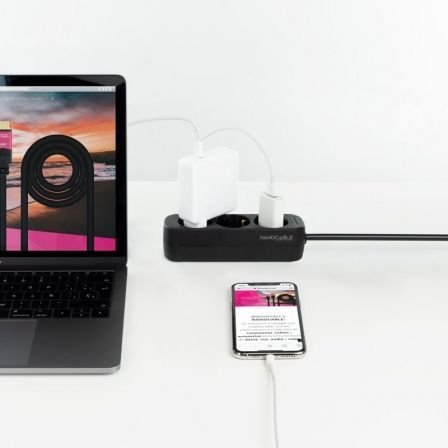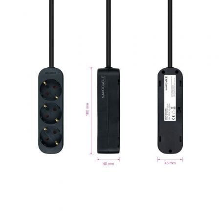 - 1 x Regleta de enchufes con 3 tomas, 1.4 m, Color Negro