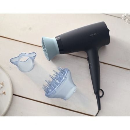 El accesorio ThermoProtect de diseño exclusivo mezcla con gran potencia aire caliente y frío para el cuidado diario.