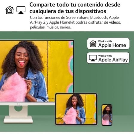 - webOS con acceso directo a plataformas de streaming, AirPlay 2, Screen Share y ThinQ Home.
