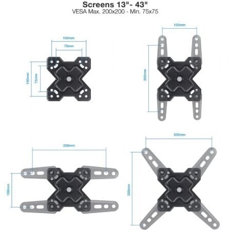 - Compatible con VESA: 75×75, 100×100, 100×200, 200×100, 200×200