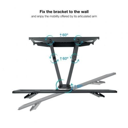 - Compatible con VESA: 100×100, 150×100, 100×150, 100×200, 200×100, ‘150×150, 200×200, 300×200, 400×200, 300×300, 400×300, 600×200, 400×400, ‘600×300, 600×400