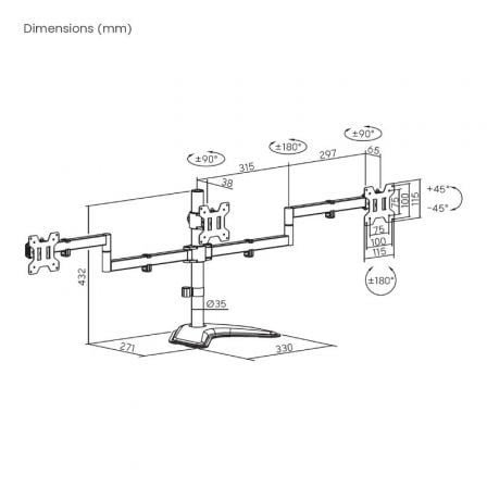 - Soporte de mesa con peana eco giratorio e inclinable para 3 monitores (3 pivotes, 2 brazos) de 13”-27”