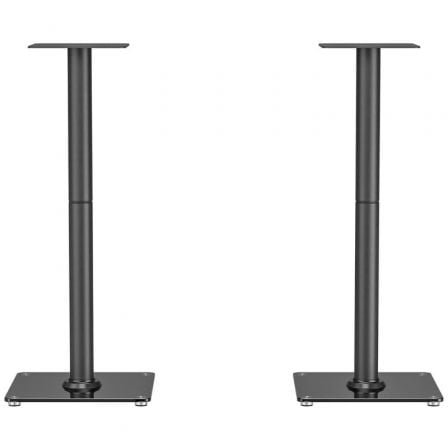 Soporte versátil de suelo para altavoces. Fabricado con vidrio y acero de alta resistencia y pintado con pintura electrostática para un acabado perfecto. Optimiza el rendimiento de tus altavoces con este soporte de suelo versátil, diseñado para combinar estabilidad, durabilidad y estilo. Fabricado en acero de alta resistencia y vidrio, con un acabado en pintura electrostática, garantiza un soporte firme y un diseño moderno que se integra en cualquier espacio. Ideal para el salón, estudios o home cinema, este soporte mantiene tus altavoces a la altura óptima, asegurando un sonido limpio, claro y preciso