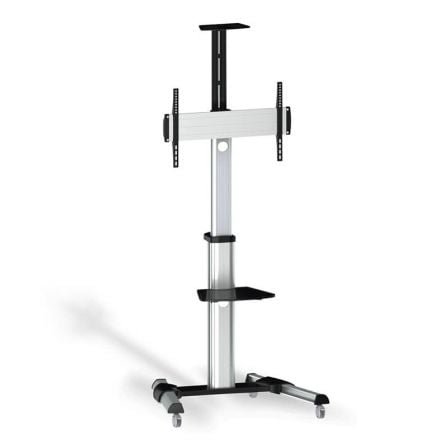 AISENS® – Soporte de suelo eco con rueda, bandeja para DVD y soporte de cámara para monitor/TV de 37”-70”. Fabricado con acero de alta resistencia y pintado con pintura electrostática para un acabado perfecto.