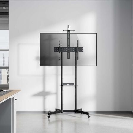 AISENS – Soporte de Suelo Eco con Rueda, Bandeja para DVD y Soporte de Cámara para Monitor/TV (37”-70”)