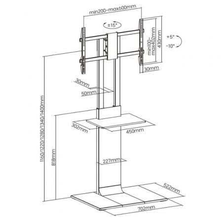 • Ajustes de altura del TV: 1160 / 1220 / 1280 / 1340 / 1400 mm