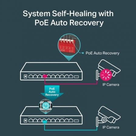 El conmutador detecta y reinicia automáticamente los dispositivos PD, como cámaras y AP, cuando se desconectan o no responden, lo que garantiza el funcionamiento estable de los dispositivos conectados a PoE, sin necesidad de monitoreo y reinicio manual.