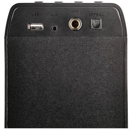 • Ofrece demás otras distintas posibilidades de conexión: entrada óptica para conectar un televisor, entrada USB, radio FM y entrada de audio auxiliar.